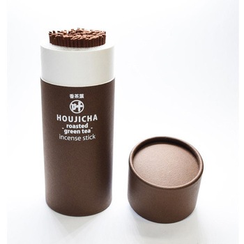 ほうじ茶の香りのお線香。お仏壇にそのまま置ける筒型タイプのパッケージです。