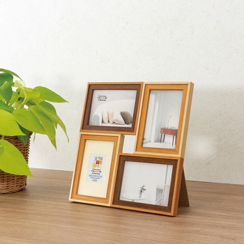 ツートン フォトフレーム L・チェキ 4面 ブラウン