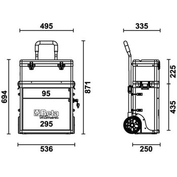 金属板フレームとプラスチック製トップにより、優れた堅牢性と軽量化を実現しました。取り外し可能なモジュール2つ:上部ツールボックス1つ、引き出し2つ付きモジュール1つ (それぞれ高さ95 mmと295 mm)。大型キャスター (160 mm) がフレームに内蔵されており、階段などでの移動が容易です。下部モジュールの2つの引き出しをロックするための集中サイドロックがあります。引き出しは、ダブルロックフック付きの伸縮式ボールベアリングガイドに取り付けられています。伸縮式アルミハンドル付きハンドルです。上部ツールボックスに小型ツールホルダーを内蔵しています。