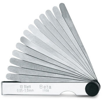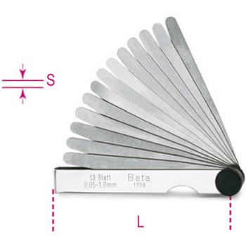 別名、シックネスゲージあるいはスキマゲージとも呼ばれている、わずかな隙間(クリアランス)を測定する際に使用するゲージです。車やバイク等では、タペット調整時やシリンダーヘッドの歪み等を測定する際に使用します。
