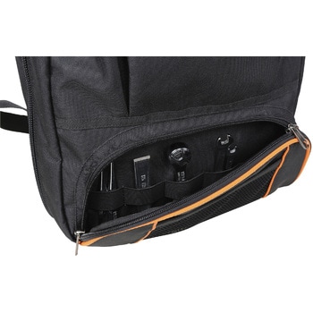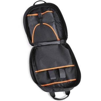 リュックサック上部中央にダブルハンドルがあり、しっかりとバランスよく持ち運べます。大きなフロントポケット2つ、収納力のある内ポケット2つ、ベルクロツールストラップ2本が付いています。4つのツールパネルで構成された便利なロールアップ式内バッグです。強化ショルダーストラップ は調節可能です。
