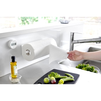 片手でカットマグネットキッチンペーパーホルダー タワー 縦タイプ ホワイト
