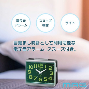 ロングセラーの目覚まし時計。誰にでもなじみがあり分かりやすい普遍的なデザインです。秒針は連続秒針で運針音が気にならずゆっくりお休みいただけます。