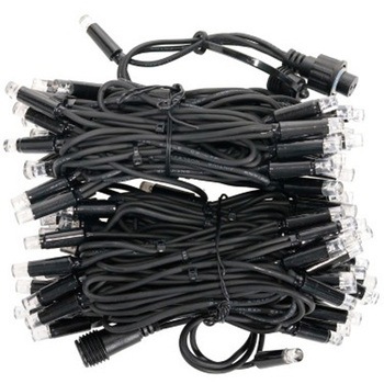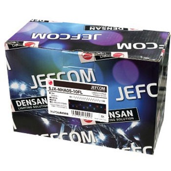 LEDイルミネーション、SJXシリーズ ストリングのフルカラータイプ。長さ10m。フルカラーLEDが個々に自動変色。別売のAC-DCアダプタ(PAD-80W-A等)に接続して流れ点灯。数珠つなぎで直列接続可能。ストリングベース等の分岐ケーブルに並列接続可能。ローボルトタイプ。