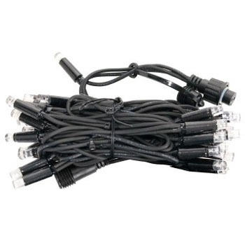 LEDイルミネーション、SJXシリーズ ストリングのフルカラータイプ。長さ2.5m。フルカラーLEDが個々に自動変色。別売のAC-DCアダプタ(PAD-80W-A等)に接続して流れ点灯。数珠つなぎで直列接続可能。ストリングベース等の分岐ケーブルに並列接続可能。ローボルトタイプ。