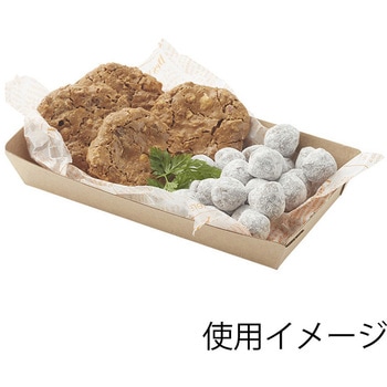 ナチュラルなクラフトテイストのノンフッ素の食品トレーです。成型された状態で包装された商品です。
