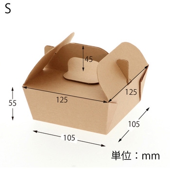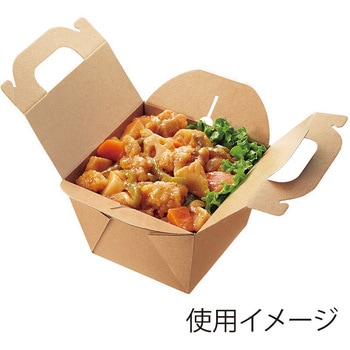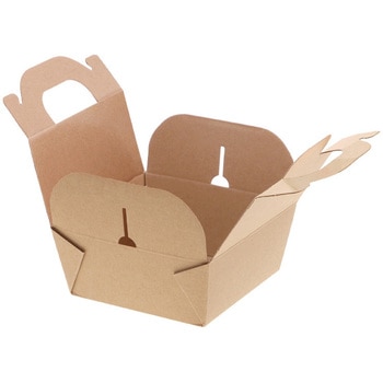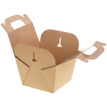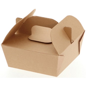ナチュラルなクラフトテイストのノンフッ素の食品箱です。3層構造のため、強度が高いパッケージ。保温・保冷に優れているため、テイクアウトに適しています。持ち手付き。成型された状態で包装された商品です。