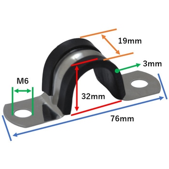 配管またはケーブルを束ねた上で壁や天井に固定出来るサドルバンドタイプの金具となります。金具は耐久性のあるSUS304ステンレスに、耐腐食性を高める防錆表面処理となっております。固定時の内径は最大で30mmまで対応しております。本体に付いているゴムは耐衝撃性や耐摩擦性、絶縁性などに優れているEPDM(エチレンプロピレンゴム)で作られています。マウントネジやボルト、ナット等を使用して、ブラケットや架台に取付けることも可能です。取付用の部品は別途ご用意ください。