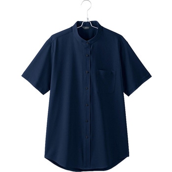 優しい印象を与える、濃色カラーの半袖スタンドカラーシャツ