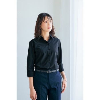 程よい袖丈が魅力の、濃色カラーの七分袖ブラウス