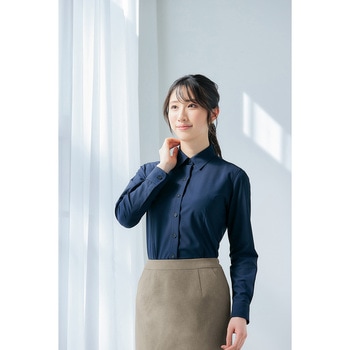 コーディネート多彩な、濃色カラーの長袖ブラウス