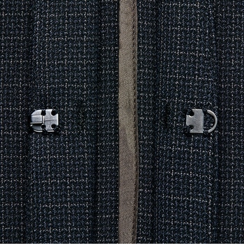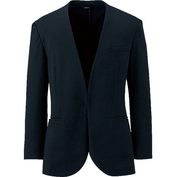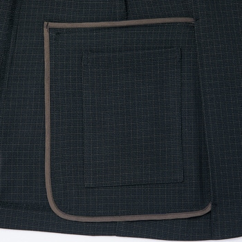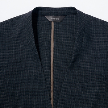 クラシックとトレンドが調和する、エコトラッドチェックメンズノーカラージャケットウールライクな質感と繊細なチェック柄が魅力再生ポリエステル糸使用のエコ素材二酸化炭素排出量(kg-CO2):13.804 (kg-CO2)