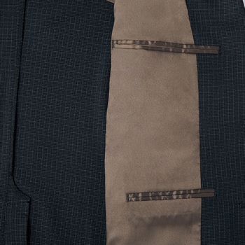 クラシックとトレンドが調和する、エコトラッドチェックメンズジャケットウールライクな質感と繊細なチェック柄が魅力再生ポリエステル糸使用のエコ素材二酸化炭素排出量(kg-CO2):15.618 (kg-CO2)