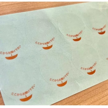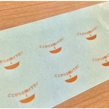 封止シールに取手がついております。取手は部分糊になっており、「ここからお開け下さい」の文字が記載されております。