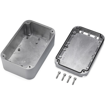 水深1メートル、24時間水没に耐えられ、放熱性も兼ね備えたアルミダイキャストボックスです。内部が導通しており、さらに導電性ガスケットを使用しているため、シールド効果を期待できます。上カバービス取付部はビスの落下防止構造になっていますので最初にねじ込むようにして入れて下さい。