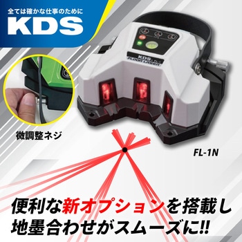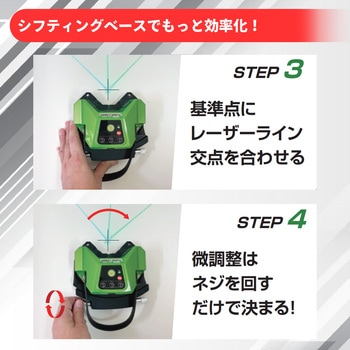 微調整ネジを回すことでレーザーライン交点(基準点)を動かさずに本体の方向を左右に微調整することができる。
