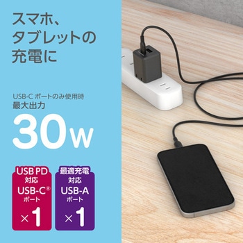 PD30W コンセントチャージャーC+A CtoCケーブル ブラック