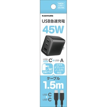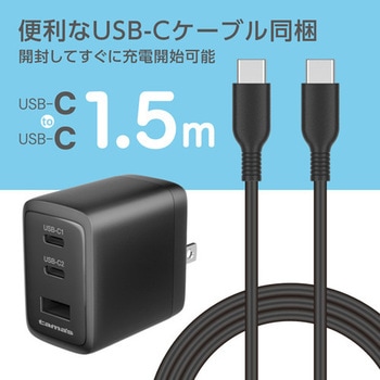 ”超急速充電 USB-Cケーブル付属GaN(窒化ガリウム)を半導体(集積回路)に採用。低発熱と小型・軽量化を実現。