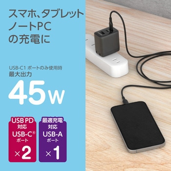 PD45Wの高出力ポートでスマートフォンからノートPCまでの充電に対応。