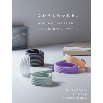 コード部分に磁力を内蔵。ケーブルどうしがくっついて、コイルケーブルのようにスパイラル状にきれいにまとまります。余分なケーブルが気になったら、くるっと巻くことで、お好きな長さで使うこともできます。マグネットの力で、ケーブル自体をデスクのスチール面などに吸着できます。引き出しなどに入れることなく、さっと手に取り、さっとなおせます。