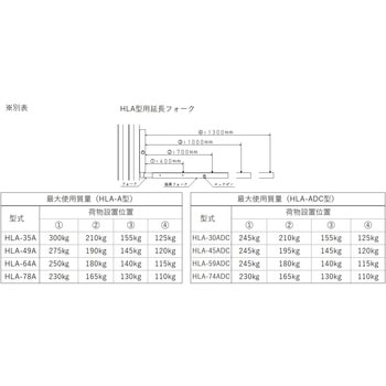 HLA-EF、【最大使用質量】使用機種と荷物設置位置による※別表確認