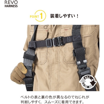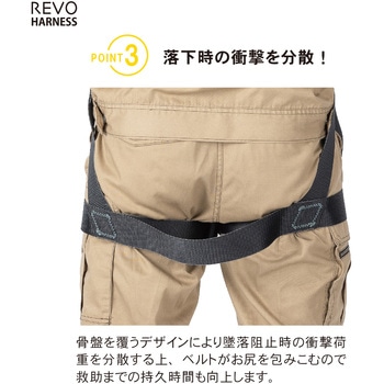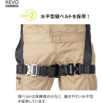 レヴォハーネスの特長はそのままに、ご要望の多かった腿ベルト水平型を新発売!