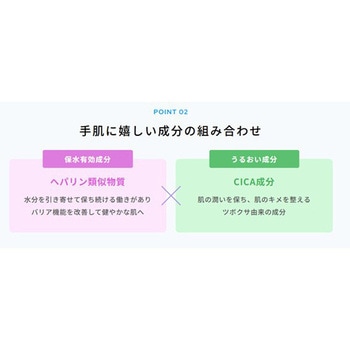 有効成分のヘパリン類似物質、うるおい成分のCICA成分配合のハンドクリーム。