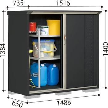 高感度デザインの磨かれた物置。連動吊り戸だから開閉が軽くて静か。耐久性と滑りに配慮のアルミレール。0~35mmのレベル調整が簡単に出来るアジャスター付。安心と便利の2ロックシステム錠。調節簡単で丈夫な棚。サビに強い高級焼付塗装。便利なアルミフック715個付。