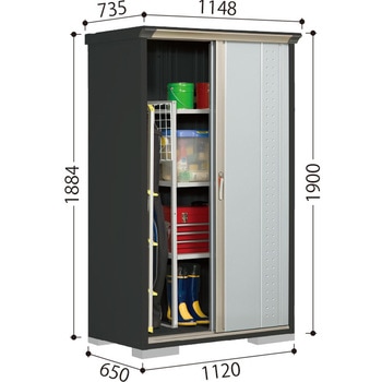 高感度デザインの磨かれた物置。連動吊り戸だから開閉が軽くて静か。耐久性と滑りに配慮のアルミレール。0~35mmのレベル調整が簡単に出来るアジャスター付。安心と便利の2ロックシステム錠。調節簡単で丈夫な棚。サビに強い高級焼付塗装。便利なアルミフック448個付。
