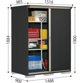 高感度デザインの磨かれた物置。連動吊り戸だから開閉が軽くて静か。耐久性と滑りに配慮のアルミレール。0~35mmのレベル調整が簡単に出来るアジャスター付。安心と便利の2ロックシステム錠。調節簡単で丈夫な棚。サビに強い高級焼付塗装。便利なアルミフック225個付。