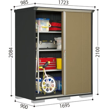 高感度デザインの磨かれた物置。連動吊り戸だから開閉が軽くて静か。耐久性と滑りに配慮のアルミレール。0~35mmのレベル調整が簡単に出来るアジャスター付。安心と便利の2ロックシステム錠。調節簡単で丈夫な棚。サビに強い高級焼付塗装。便利なアルミフック343個付。