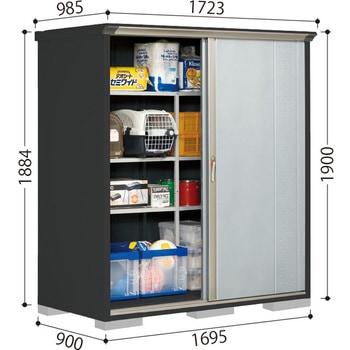 高感度デザインの磨かれた物置。連動吊り戸だから開閉が軽くて静か。耐久性と滑りに配慮のアルミレール。0~35mmのレベル調整が簡単に出来るアジャスター付。安心と便利の2ロックシステム錠。調節簡単で丈夫な棚。サビに強い高級焼付塗装。便利なアルミフック326個付。