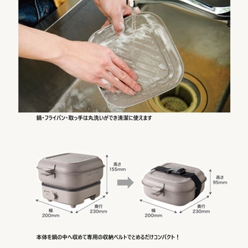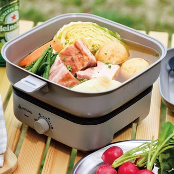 コンパクトに収納でき持ち運びに便利なアウトドアでも活躍する電気クッカー。室内はもちろんポータブル電源を使って車内泊やアウトドアでも使える電気クッカーです。コンパクトサイズなので、ちょっとしたおつまみを作る時や、少人数・ソロキャンプでも活躍します。本体が鍋の中にすっぽり収まるのでスタッキング収納が可能。
