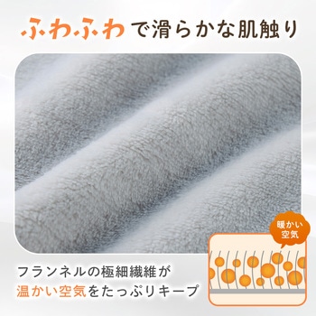 ふわふわで滑らかな肌触りが心地よい、フランネル素材の着る毛布です。フランネルの極細繊維が暖かい空気をたっぷり抱え込むから、布団がはだけても首まわりから肩までしっかり包み込んで体を暖めます。エリを伸ばすと首もとまですっぽりカバーできます。1枚生地で軽いから就寝時の冷え対策だけでなく、ルームウェアにも。