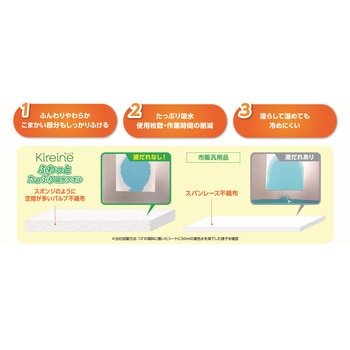 エアレイド不織布の製造技術を活かした、厚手でしっかりとふける衛生的な不織布製品です。市販汎用品にくらべ約2.8倍の保水量で、たっぷり吸水できる超厚手不織布タオルです