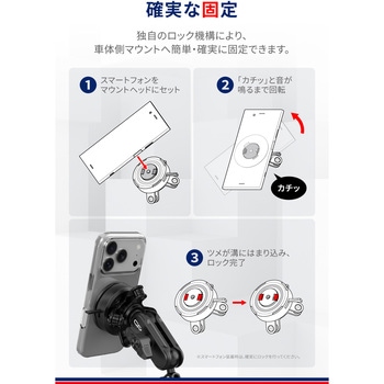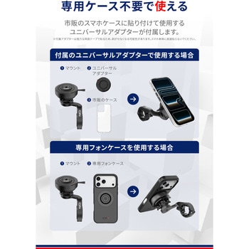 専用ケースが発売されていないスマートフォン用の汎用貼り付けアダプター。市販のスマホケースに貼り付けるだけで、すぐに使用可能です。GRスマートフォンマウントシリーズに対応しており、マグネットでスマホの位置を誘導しスムーズにセットできます。