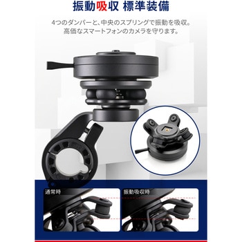さらに振動吸収機構を標準搭載し、走行中の振動を抑えて揺れを軽減し、スマートフォンへの負荷を減らす設計です。