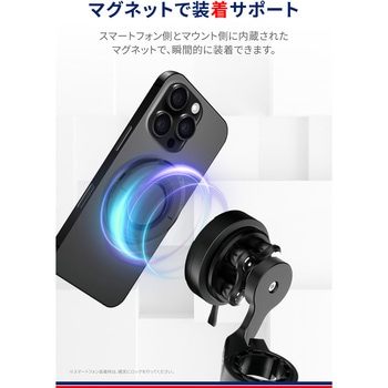 マグネットがスマホの位置を誘導するため、瞬時に装着が可能。