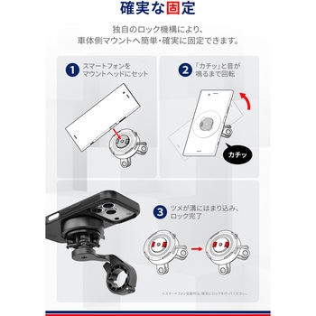 スマホを載せて軽く回転させると固定される、円盤形状のロック構造を採用した、スマートフォンマウントシリーズ。