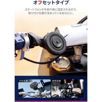 車体によってマウントできない位置でも、固定するクランプ位置とスマホマウントの位置をずらしてあるので柔軟な装着が可能です。
