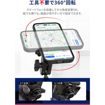 スマホをセットした後は、工具不要で360度回転でき好みの向きに合わせられます。