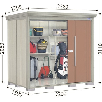 用途物置付属品棚板2枚・竪樋1本、アンカープレート4セット高さ(mm)全体:2110、開口部:1850タイプ一般型・結露減少屋根奥行(mm)全体:1795、床回り:1590、内寸:1420間口(mm)全体:2280、開口部:1238、床回り:2200、内寸:2144側面棚タイプ耐荷重(N/m2)屋根:1200、床:6000床面積(m2)3.5色(扉)アイボリー、ブラックRoHS指令(10物質対応)対応内容量1台