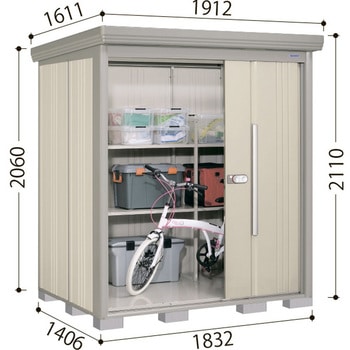 用途物置付属品棚板4枚・竪樋1本、アンカープレート4セット高さ(mm)全体:2110、開口部:1850タイプ一般型・結露減少屋根奥行(mm)全体:1611、床回り:1406間口(mm)全体:1912、開口部:992、床回り:1832、内寸:1776背面棚タイプ耐荷重(N/m2)屋根:1200、床:6000床面積(m2)2.58色(扉)アイボリー、ブラックRoHS指令(10物質対応)対応内容量1台
