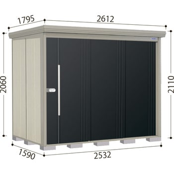 用途物置付属品棚板2枚・竪樋1本、アンカープレート4セット高さ(mm)全体:2110、開口部:1850タイプ多雪型・標準屋根奥行(mm)全体:1795、床回り:1590間口(mm)全体:2612、開口部:1460、床回り:2532、内寸:2476側面棚タイプ耐荷重(N/m2)屋根:3000、床:6000床面積(m2)4.03色(扉)アイボリー、ブラックRoHS指令(10物質対応)対応内容量1台