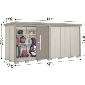 高感度デザインの磨かれた物置。連動吊り戸だから開閉が軽くて静か。