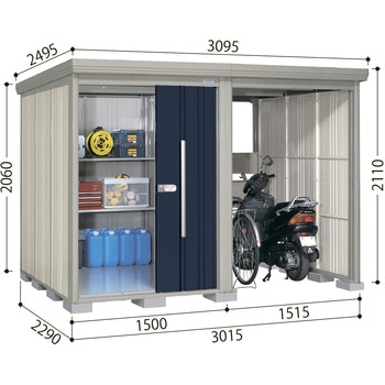 高感度デザインの磨かれた物置。連動吊り戸だから開閉が軽くて静か。