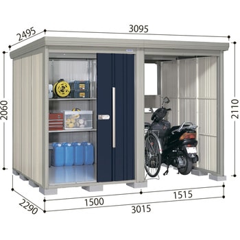 高感度デザインの磨かれた物置。連動吊り戸だから開閉が軽くて静か。