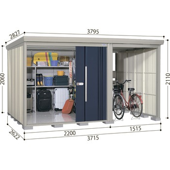 高感度デザインの磨かれた物置。連動吊り戸だから開閉が軽くて静か。