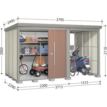 高感度デザインの磨かれた物置。連動吊り戸だから開閉が軽くて静か。