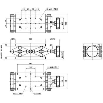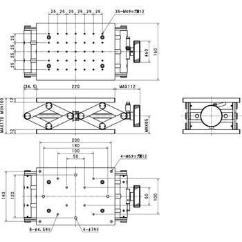 ・精密ラボジャッキは、移動ガイドにパンタグラフ式を採用し、重量物の高さ調整ができるラボジャッキです。・ハンドルを回転することにより、ステージ面を垂直移動できます。・クランプ又はロックネジ(ハンドル付近)にて、昇降動作の固定・開放をします。・ステージ面のM4タップ(ピッチ 25mm)を利用して、機器を取り付けられます。・材質は、黒アルマイト仕上げのアルミ製で、機構部は真鍮製、ステンレス製です。